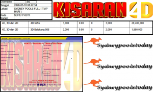 - KISARAN4D JACKPOT PASARAN SYDNEY POOLS ”5955” Rp 30,000,000,- LUNAS