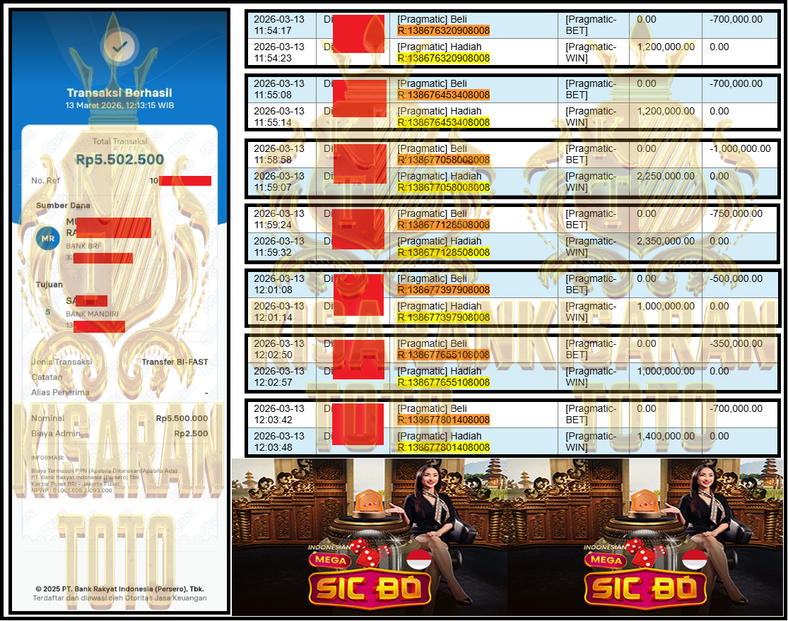 - KISARANTOTO JACKPOT PRAGMATIC Gaming ”Indonesian Mega Sic Bo” Rp 5,500,000,- LUNAS