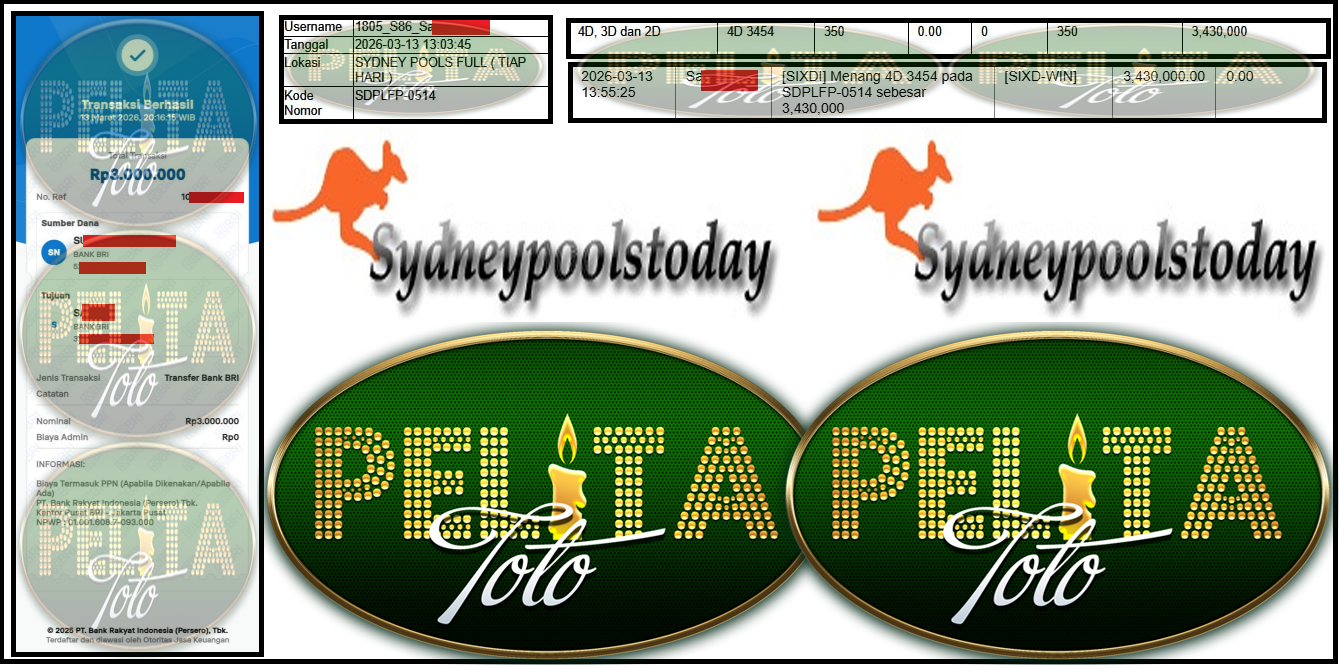 - PELITATOTO JACKPOT PASARAN SYDNEY POOLS ”3454” Rp 3,000,000,- LUNAS