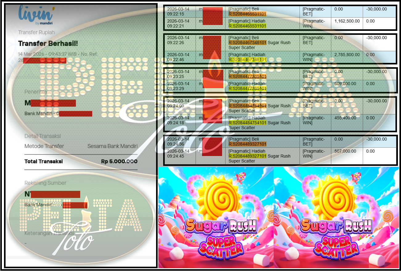 - PELITATOTO JACKPOT PRAGMATIC Gaming ”Sugar Rush Super Scatter” Rp 5,000,000,- LUNAS