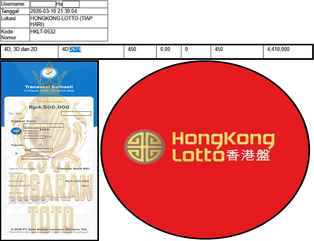 KISARANTOTO JACKPOT PASARAN HONGKONG POOLS ”2674” ‌‌‌‌‌‌‌‏Rp 4,500,000,- LUNAS