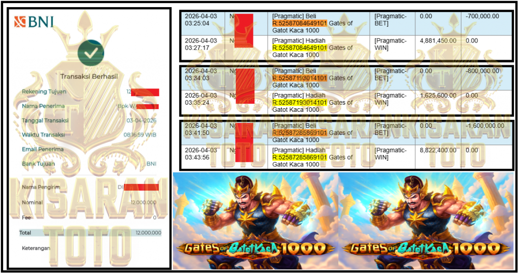JACKPOT : PRAGMATIC Gaming ”Gates of Gatot Kaca 1000”